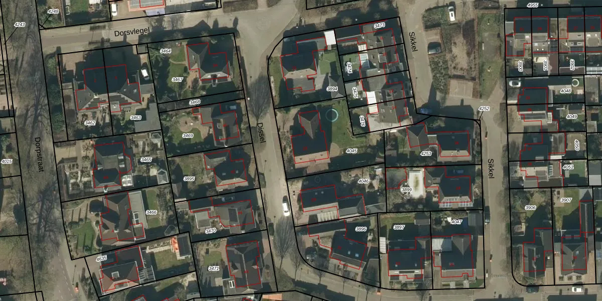 Het perceel waarop Dissel 23 staat heeft een oppervlakte van 680 m². Dit is een groot perceel. De perceeloppervlakte wordt geregistreerd door het Kadaster. Gedetailleerde informatie over de maten van dit perceel kunt u vinden in het rapport Kadastrale kaart met maatvoering van Dissel 23.