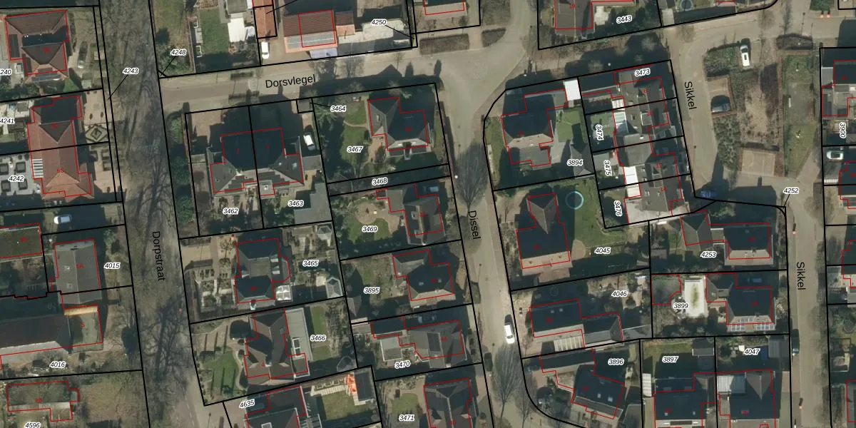 Gebruik de zoekbalk of klik op een perceel voor informatie over de adressen binnen dit perceel.