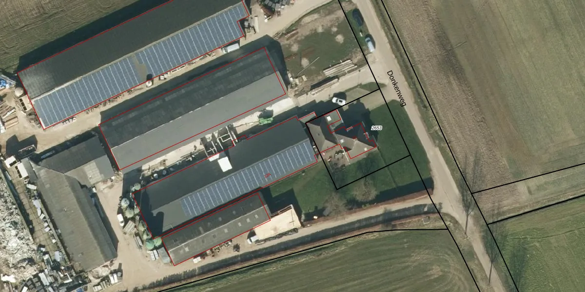 Het perceel waarop Donkenweg 12-A staat heeft een oppervlakte van 3,2 ha. Dit is een zeer groot perceel. De perceeloppervlakte wordt geregistreerd door het Kadaster. Gedetailleerde informatie over de maten van dit perceel kunt u vinden in het rapport Kadastrale kaart met maatvoering van Donkenweg 12-A.
