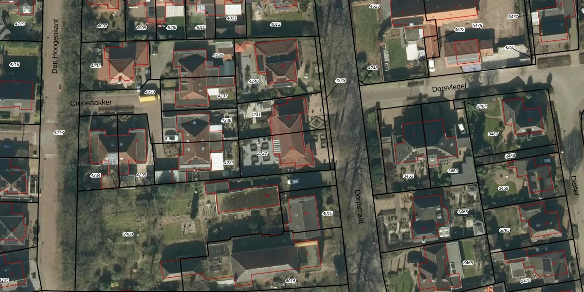 Dorpstraat 5-C is gelegen op kadastraal perceel NLD03B4242. Deze kadastrale aanduiding is uniek en wordt gebruikt door het Kadaster om eigendomsrechten en andere zakelijke rechten vast te leggen. Het perceel maakt onderdeel uit van de kadastrale gemeente Nuland.