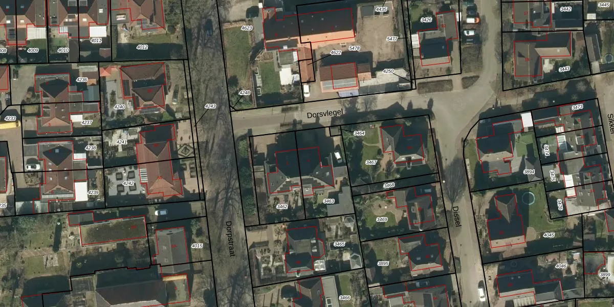 Dorsvlegel 4 is gelegen op kadastraal perceel NLD03B3463. Deze kadastrale aanduiding is uniek en wordt gebruikt door het Kadaster om eigendomsrechten en andere zakelijke rechten vast te leggen. Het perceel maakt onderdeel uit van de kadastrale gemeente Nuland.