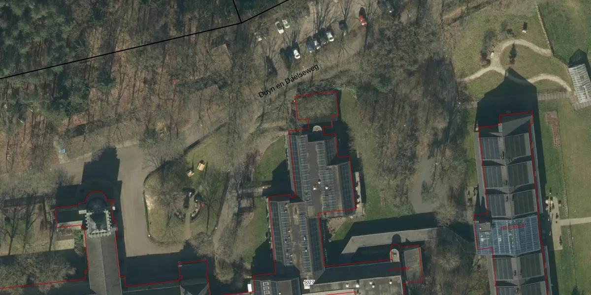 Het perceel waarop Duyn en Daelseweg 15-A-210 staat heeft een oppervlakte van 6,1 ha. Dit is een zeer groot perceel. De perceeloppervlakte wordt geregistreerd door het Kadaster. Gedetailleerde informatie over de maten van dit perceel kunt u vinden in het rapport Kadastrale kaart met maatvoering van Duyn en Daelseweg 15-A-210.