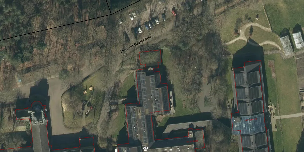 Het perceel waarop Duyn en Daelseweg 15-A-416 staat heeft een oppervlakte van 6,1 ha. Dit is een zeer groot perceel. De perceeloppervlakte wordt geregistreerd door het Kadaster. Gedetailleerde informatie over de maten van dit perceel kunt u vinden in het rapport Kadastrale kaart met maatvoering van Duyn en Daelseweg 15-A-416.