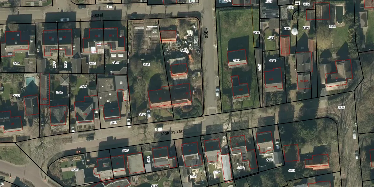 Gebruik de zoekbalk of klik op een perceel voor informatie over de adressen binnen dit perceel.