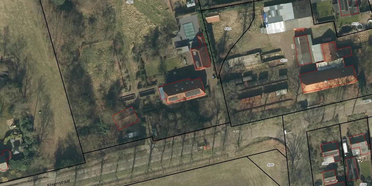 Het perceel waarop Elzenstraat 2 staat heeft een oppervlakte van 1,7 ha. Dit is een zeer groot perceel. De perceeloppervlakte wordt geregistreerd door het Kadaster. Gedetailleerde informatie over de maten van dit perceel kunt u vinden in het rapport Kadastrale kaart met maatvoering van Elzenstraat 2.
