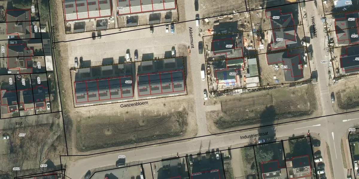 Ganzenbloem 17 is gelegen op kadastraal perceel NLD03B5488. Deze kadastrale aanduiding is uniek en wordt gebruikt door het Kadaster om eigendomsrechten en andere zakelijke rechten vast te leggen. Het perceel maakt onderdeel uit van de kadastrale gemeente Nuland.