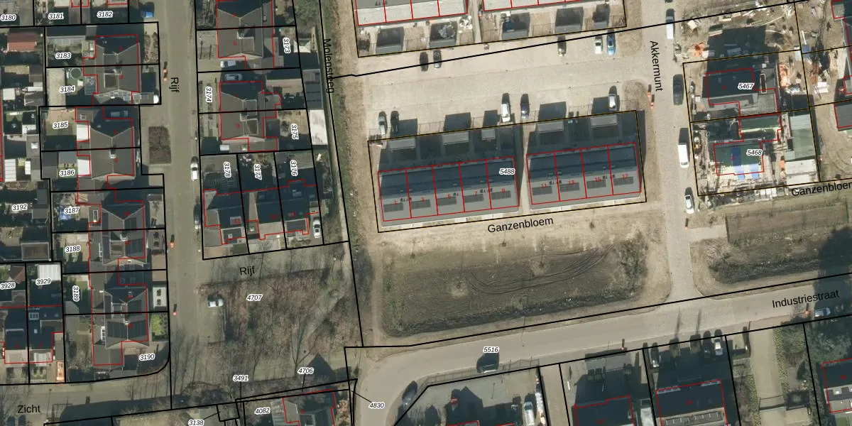 Ganzenbloem 3 is gelegen op kadastraal perceel NLD03B5488. Deze kadastrale aanduiding is uniek en wordt gebruikt door het Kadaster om eigendomsrechten en andere zakelijke rechten vast te leggen. Het perceel maakt onderdeel uit van de kadastrale gemeente Nuland.