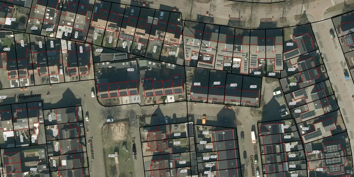 Het perceel waarop Gerstakker 15 staat heeft een oppervlakte van 1263 m². Dit is een zeer groot perceel. De perceeloppervlakte wordt geregistreerd door het Kadaster. Gedetailleerde informatie over de maten van dit perceel kunt u vinden in het rapport Kadastrale kaart met maatvoering van Gerstakker 15.