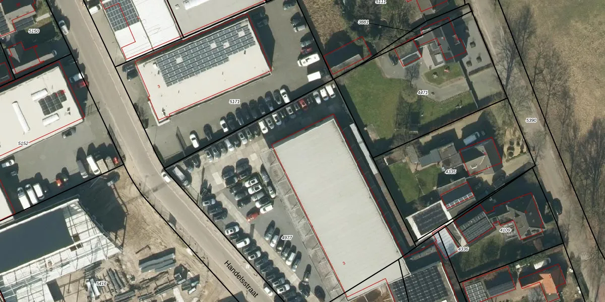 Handelsstraat 3-A is gelegen op kadastraal perceel NLD03B4977. Deze kadastrale aanduiding is uniek en wordt gebruikt door het Kadaster om eigendomsrechten en andere zakelijke rechten vast te leggen. Het perceel maakt onderdeel uit van de kadastrale gemeente Nuland.