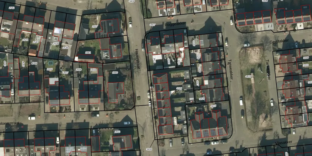 Het perceel waarop Haverstraat 16 staat heeft een oppervlakte van 1046 m². Dit is een zeer groot perceel. De perceeloppervlakte wordt geregistreerd door het Kadaster. Gedetailleerde informatie over de maten van dit perceel kunt u vinden in het rapport Kadastrale kaart met maatvoering van Haverstraat 16.