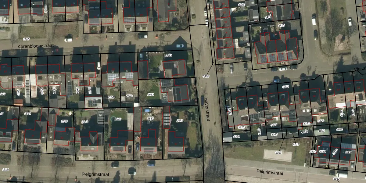 Gebruik de zoekbalk of klik op een perceel voor informatie over de adressen binnen dit perceel.