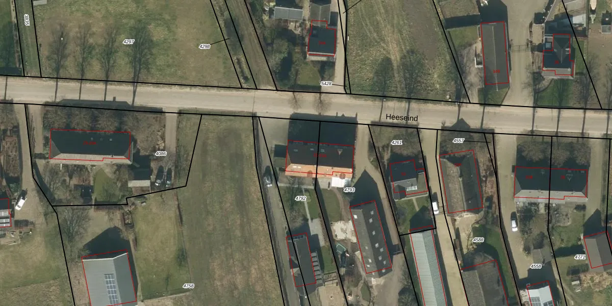 Het perceel waarop Heeseind 31 staat heeft een oppervlakte van 4400 m². Dit is een zeer groot perceel. De perceeloppervlakte wordt geregistreerd door het Kadaster. Gedetailleerde informatie over de maten van dit perceel kunt u vinden in het rapport Kadastrale kaart met maatvoering van Heeseind 31.