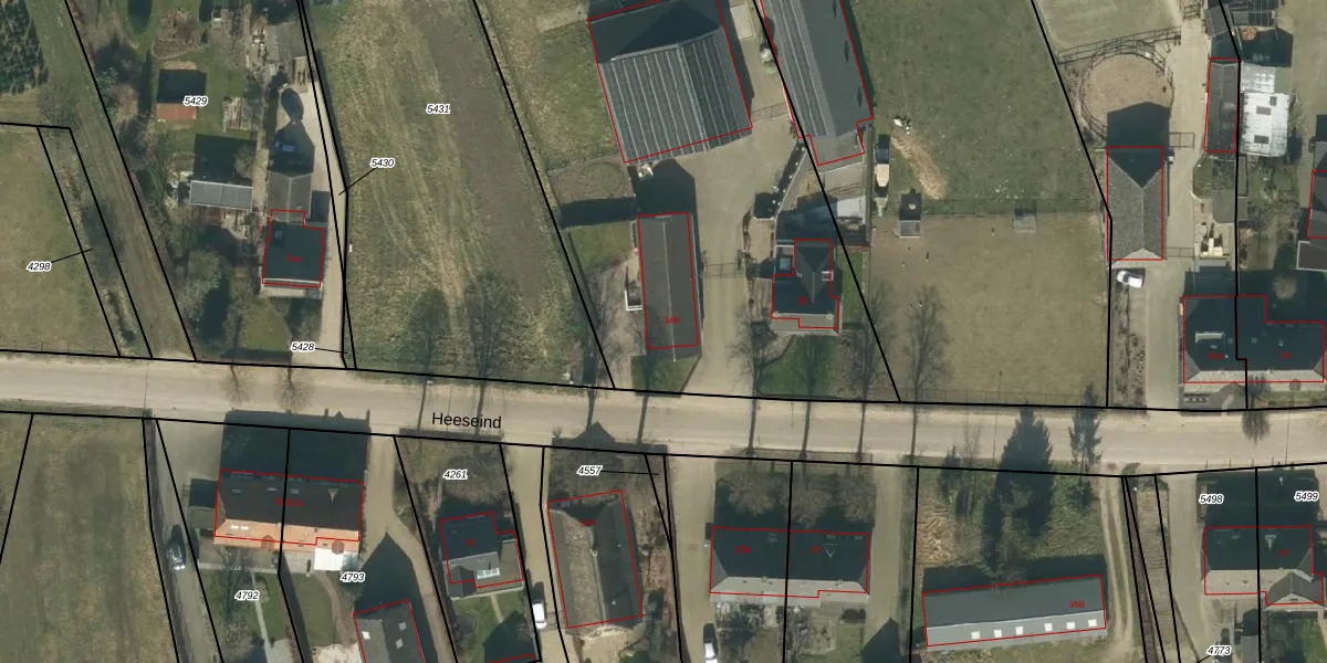 Het perceel waarop Heeseind 34-B staat heeft een oppervlakte van 2,0 ha. Dit is een zeer groot perceel. De perceeloppervlakte wordt geregistreerd door het Kadaster. Gedetailleerde informatie over de maten van dit perceel kunt u vinden in het rapport Kadastrale kaart met maatvoering van Heeseind 34-B.