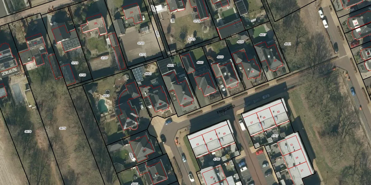 Het perceel waarop Heijcamp 36 staat heeft een oppervlakte van 416 m². Dit is een groot perceel. De perceeloppervlakte wordt geregistreerd door het Kadaster. Gedetailleerde informatie over de maten van dit perceel kunt u vinden in het rapport Kadastrale kaart met maatvoering van Heijcamp 36.