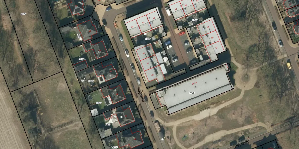 Heijcamp 49 is gelegen op kadastraal perceel NLD03B4766. Deze kadastrale aanduiding is uniek en wordt gebruikt door het Kadaster om eigendomsrechten en andere zakelijke rechten vast te leggen. Het perceel maakt onderdeel uit van de kadastrale gemeente Nuland.