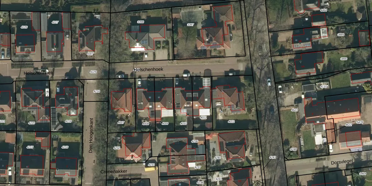 Helschenhoek 5 is gelegen op kadastraal perceel NLD03B4010. Deze kadastrale aanduiding is uniek en wordt gebruikt door het Kadaster om eigendomsrechten en andere zakelijke rechten vast te leggen. Het perceel maakt onderdeel uit van de kadastrale gemeente Nuland.
