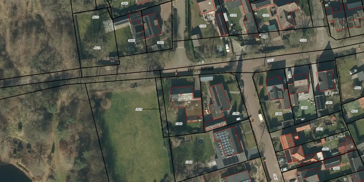 Het perceel waarop Heuvelstraat 13 staat heeft een oppervlakte van 660 m². Dit is een groot perceel. De perceeloppervlakte wordt geregistreerd door het Kadaster. Gedetailleerde informatie over de maten van dit perceel kunt u vinden in het rapport Kadastrale kaart met maatvoering van Heuvelstraat 13.
