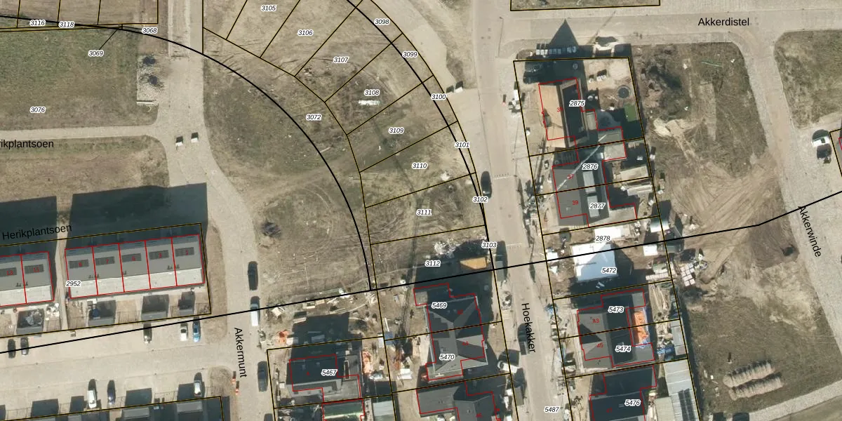 Gebruik de zoekbalk of klik op een perceel voor informatie over de adressen binnen dit perceel.