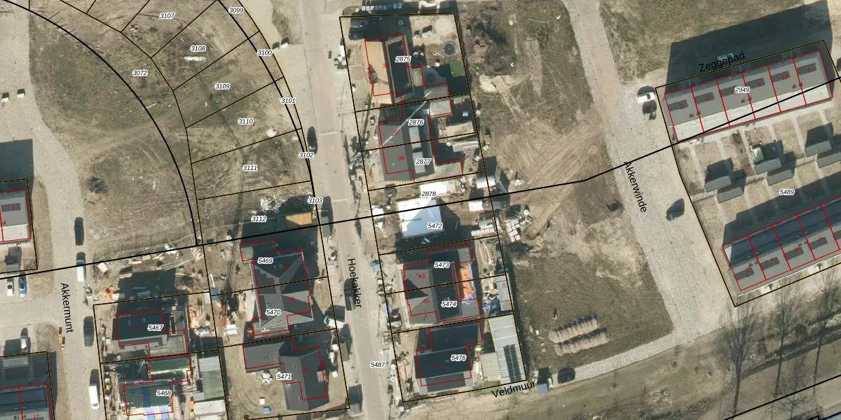 Gebruik de zoekbalk of klik op een perceel voor informatie over de adressen binnen dit perceel.