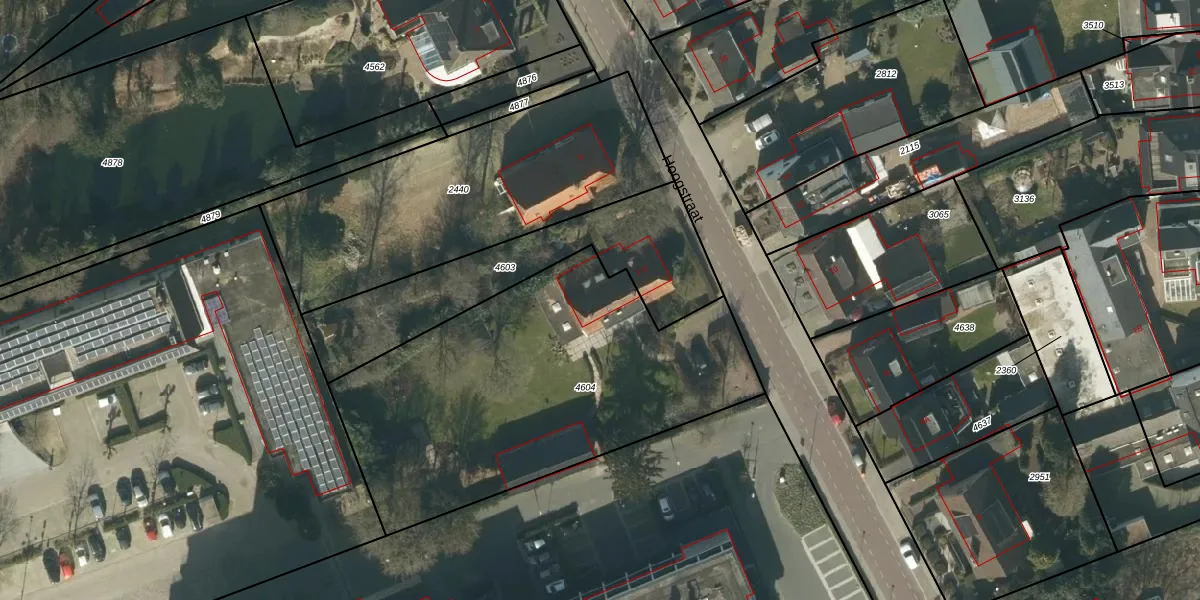 Hoogstraat 1 is gelegen op kadastraal perceel NLD03B4604. Deze kadastrale aanduiding is uniek en wordt gebruikt door het Kadaster om eigendomsrechten en andere zakelijke rechten vast te leggen. Het perceel maakt onderdeel uit van de kadastrale gemeente Nuland.
