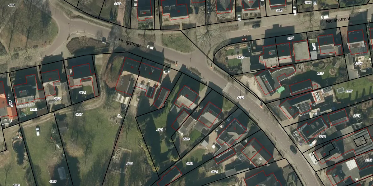 Het perceel waarop Hoogstraat 15 staat heeft een oppervlakte van 900 m². Dit is een groot perceel. De perceeloppervlakte wordt geregistreerd door het Kadaster. Gedetailleerde informatie over de maten van dit perceel kunt u vinden in het rapport Kadastrale kaart met maatvoering van Hoogstraat 15.