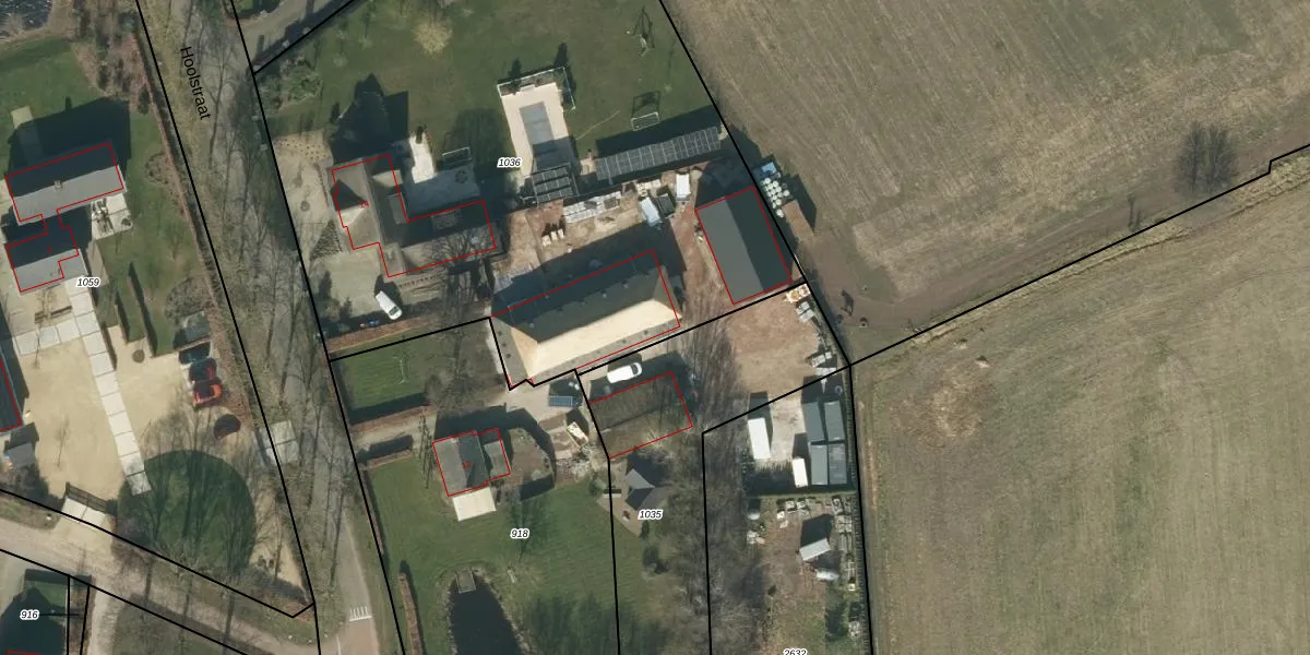 Het perceel waarop Hoolstraat 12-A staat heeft een oppervlakte van 4210 m². Dit is een zeer groot perceel. De perceeloppervlakte wordt geregistreerd door het Kadaster. Gedetailleerde informatie over de maten van dit perceel kunt u vinden in het rapport Kadastrale kaart met maatvoering van Hoolstraat 12-A.