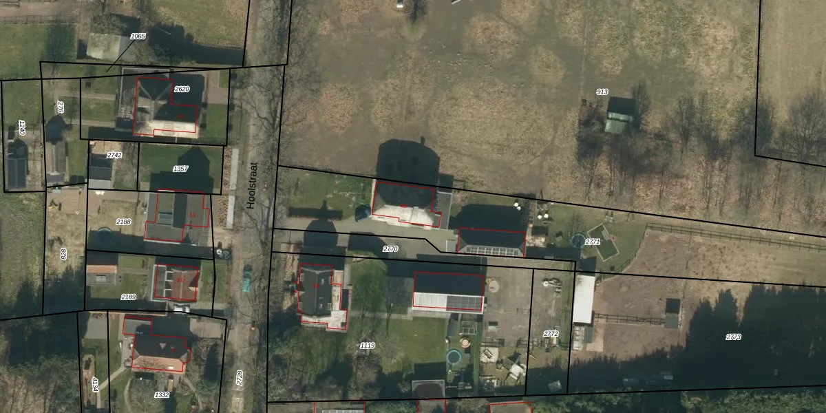 Het perceel waarop Hoolstraat 8-B staat heeft een oppervlakte van 2170 m². Dit is een zeer groot perceel. De perceeloppervlakte wordt geregistreerd door het Kadaster. Gedetailleerde informatie over de maten van dit perceel kunt u vinden in het rapport Kadastrale kaart met maatvoering van Hoolstraat 8-B.
