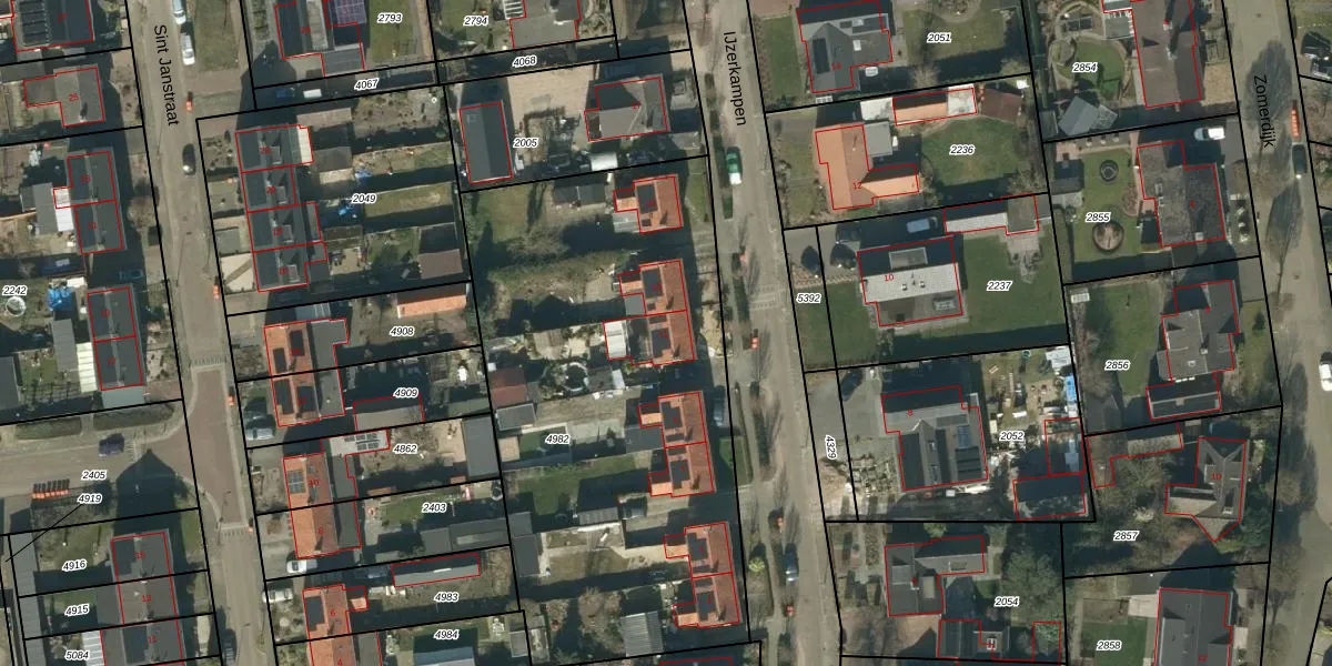 Het perceel waarop IJzerkampen 11 staat heeft een oppervlakte van 2584 m². Dit is een zeer groot perceel. De perceeloppervlakte wordt geregistreerd door het Kadaster. Gedetailleerde informatie over de maten van dit perceel kunt u vinden in het rapport Kadastrale kaart met maatvoering van IJzerkampen 11.