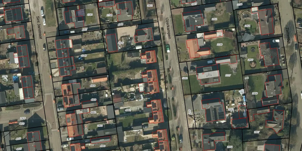 Het perceel waarop IJzerkampen 13 staat heeft een oppervlakte van 2584 m². Dit is een zeer groot perceel. De perceeloppervlakte wordt geregistreerd door het Kadaster. Gedetailleerde informatie over de maten van dit perceel kunt u vinden in het rapport Kadastrale kaart met maatvoering van IJzerkampen 13.