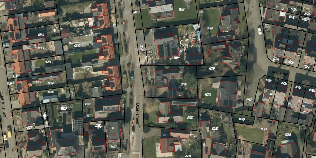 Gebruik de zoekbalk of klik op een perceel voor informatie over de adressen binnen dit perceel.