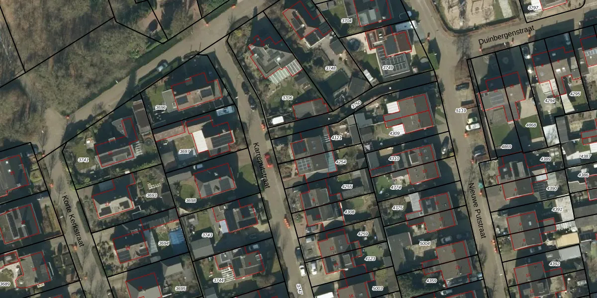 Gebruik de zoekbalk of klik op een perceel voor informatie over de adressen binnen dit perceel.
