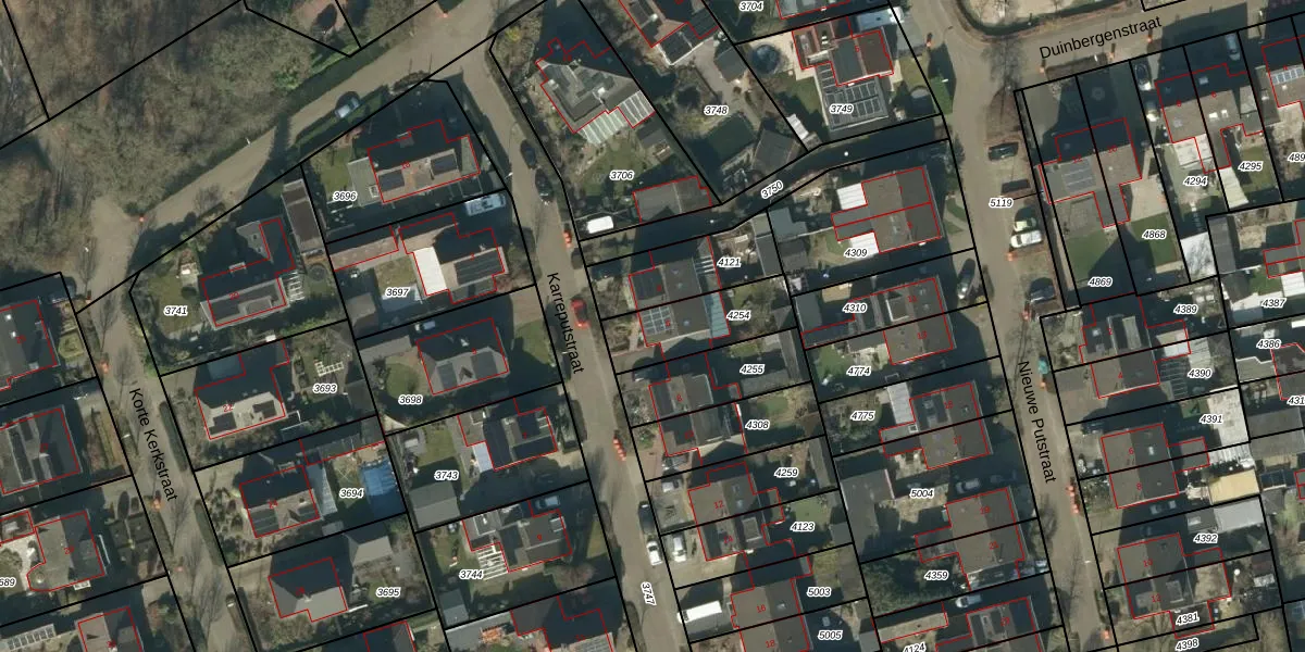 Gebruik de zoekbalk of klik op een perceel voor informatie over de adressen binnen dit perceel.