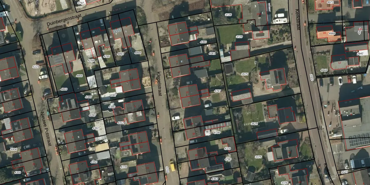 Klepelstraat 10 is gelegen op kadastraal perceel NLD03B4797. Deze kadastrale aanduiding is uniek en wordt gebruikt door het Kadaster om eigendomsrechten en andere zakelijke rechten vast te leggen. Het perceel maakt onderdeel uit van de kadastrale gemeente Nuland.