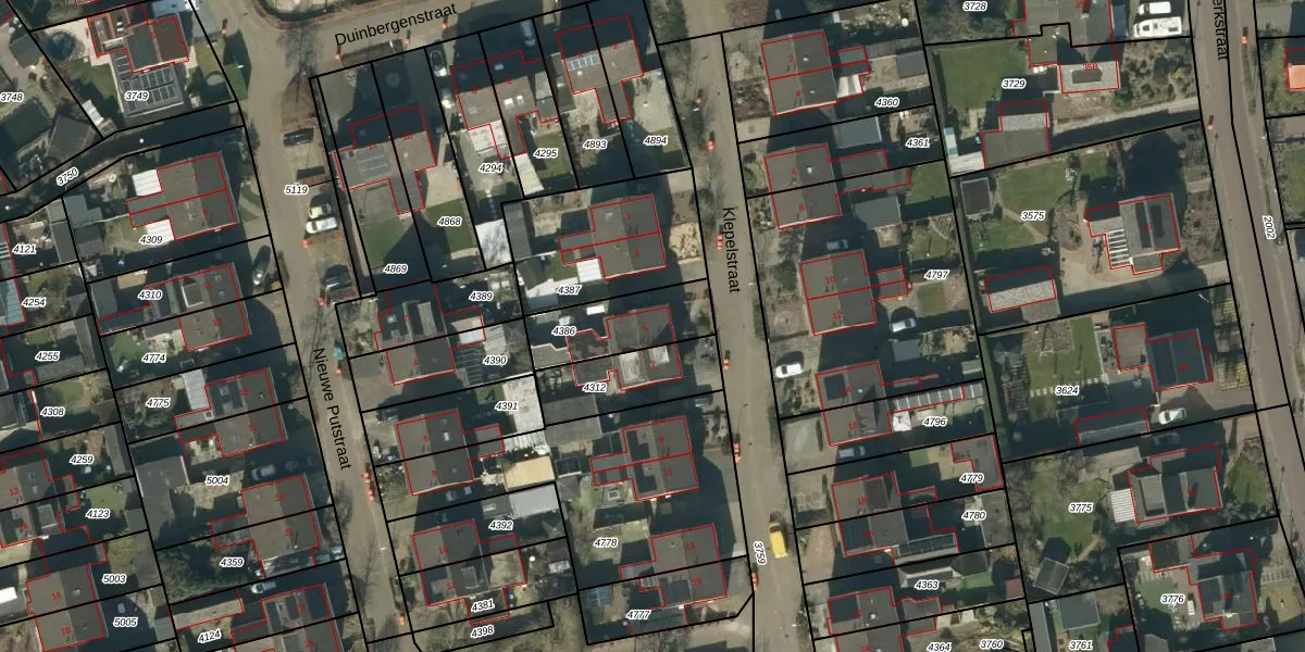 Klepelstraat 5 is gelegen op kadastraal perceel NLD03B4386. Deze kadastrale aanduiding is uniek en wordt gebruikt door het Kadaster om eigendomsrechten en andere zakelijke rechten vast te leggen. Het perceel maakt onderdeel uit van de kadastrale gemeente Nuland.