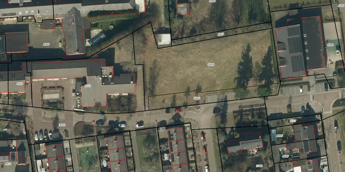 Kloosterstraat 13 is gelegen op kadastraal perceel NLD03B5454. Deze kadastrale aanduiding is uniek en wordt gebruikt door het Kadaster om eigendomsrechten en andere zakelijke rechten vast te leggen. Het perceel maakt onderdeel uit van de kadastrale gemeente Nuland.