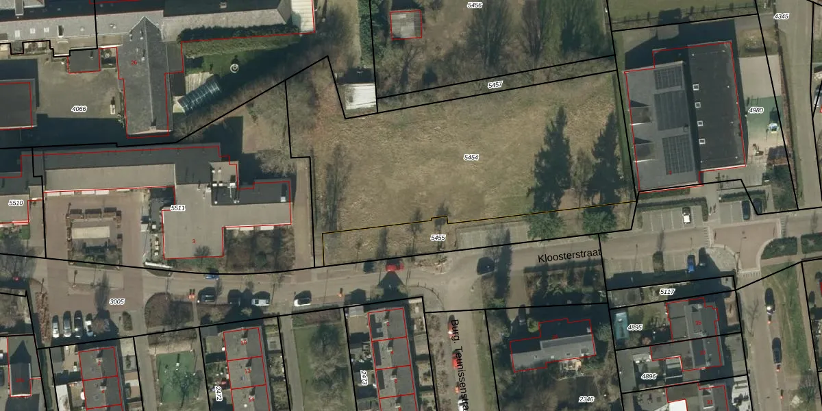 Het perceel waarop Kloosterstraat 15 staat heeft een oppervlakte van 2515 m². Dit is een zeer groot perceel. De perceeloppervlakte wordt geregistreerd door het Kadaster. Gedetailleerde informatie over de maten van dit perceel kunt u vinden in het rapport Kadastrale kaart met maatvoering van Kloosterstraat 15.