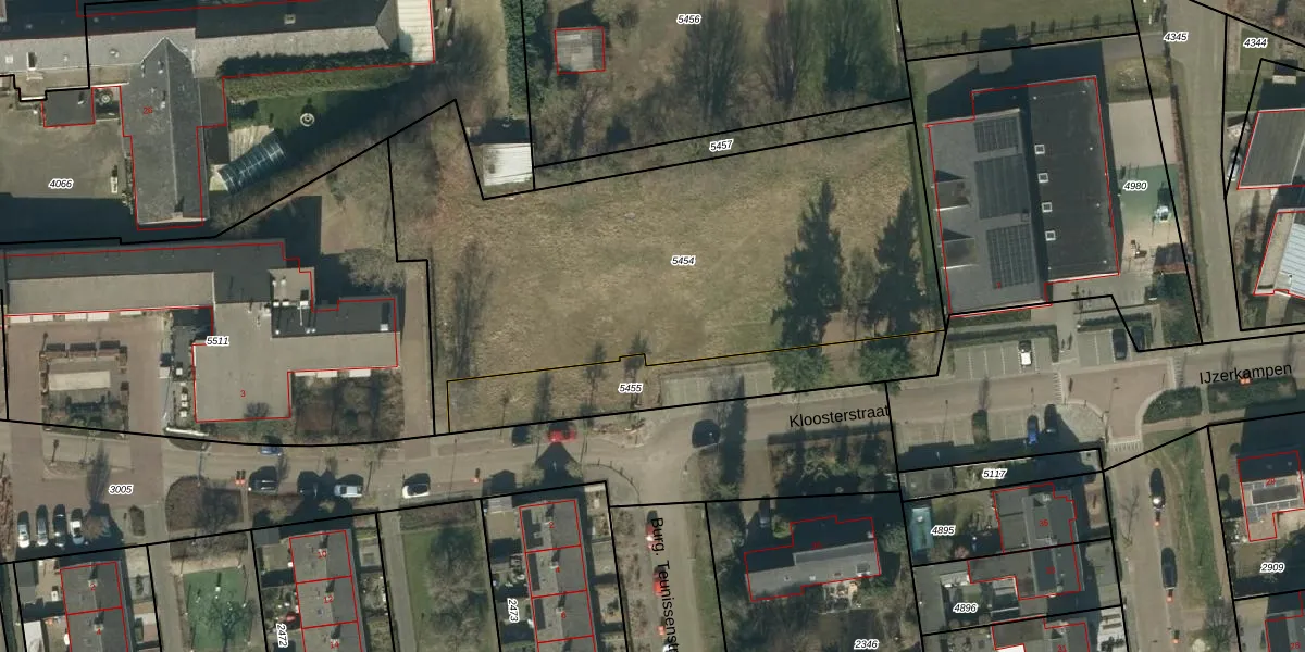 Het perceel waarop Kloosterstraat 17 staat heeft een oppervlakte van 2515 m². Dit is een zeer groot perceel. De perceeloppervlakte wordt geregistreerd door het Kadaster. Gedetailleerde informatie over de maten van dit perceel kunt u vinden in het rapport Kadastrale kaart met maatvoering van Kloosterstraat 17.