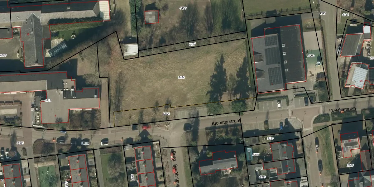 Het perceel waarop Kloosterstraat 19 staat heeft een oppervlakte van 2515 m². Dit is een zeer groot perceel. De perceeloppervlakte wordt geregistreerd door het Kadaster. Gedetailleerde informatie over de maten van dit perceel kunt u vinden in het rapport Kadastrale kaart met maatvoering van Kloosterstraat 19.