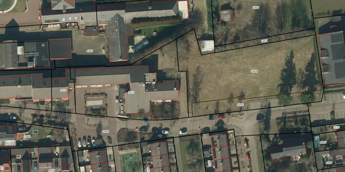 Het perceel waarop Kloosterstraat 5-K staat heeft een oppervlakte van 2185 m². Dit is een zeer groot perceel. De perceeloppervlakte wordt geregistreerd door het Kadaster. Gedetailleerde informatie over de maten van dit perceel kunt u vinden in het rapport Kadastrale kaart met maatvoering van Kloosterstraat 5-K.