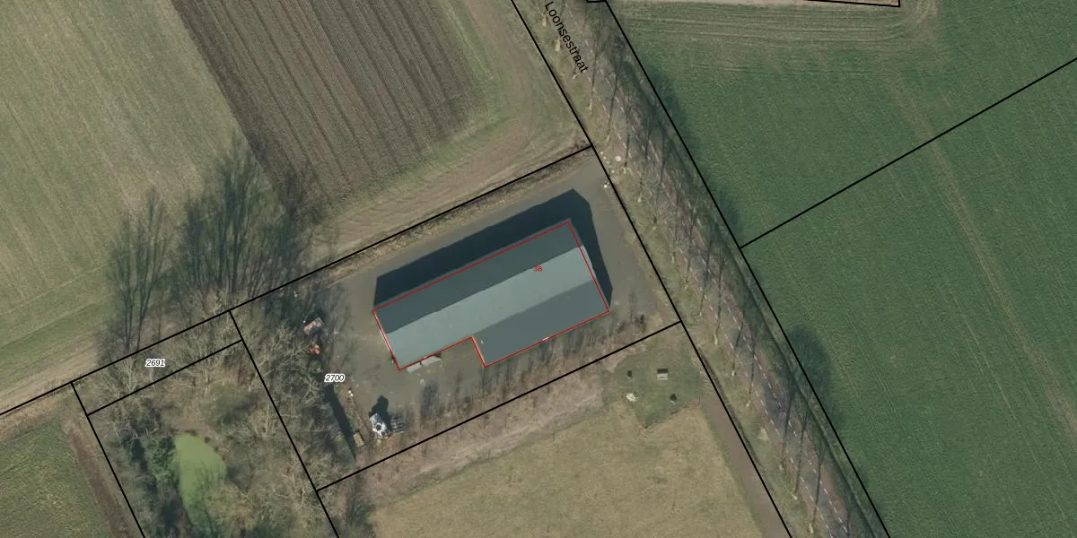 Het perceel waarop Loonsestraat 3-B staat heeft een oppervlakte van 2745 m². Dit is een zeer groot perceel. De perceeloppervlakte wordt geregistreerd door het Kadaster. Gedetailleerde informatie over de maten van dit perceel kunt u vinden in het rapport Kadastrale kaart met maatvoering van Loonsestraat 3-B.