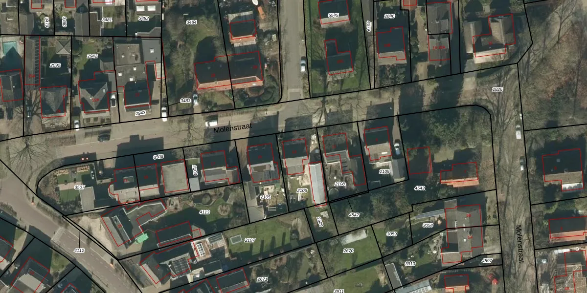 Molenstraat 13 is gelegen op kadastraal perceel NLD03B2106. Deze kadastrale aanduiding is uniek en wordt gebruikt door het Kadaster om eigendomsrechten en andere zakelijke rechten vast te leggen. Het perceel maakt onderdeel uit van de kadastrale gemeente Nuland.