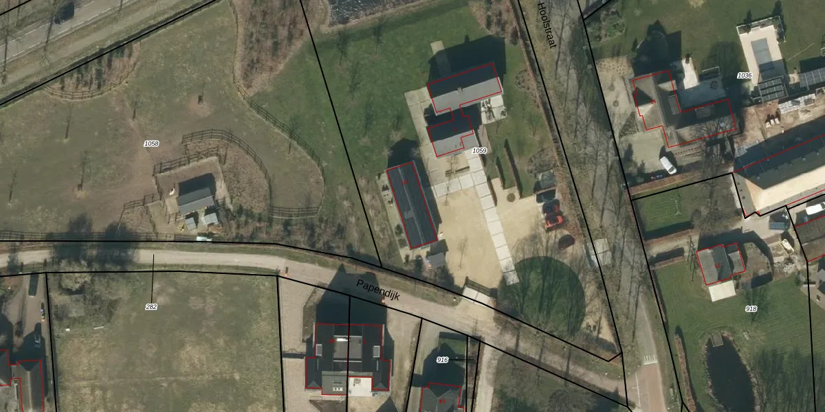 Papendijk 1-A is gelegen op kadastraal perceel NLD03E1059. Deze kadastrale aanduiding is uniek en wordt gebruikt door het Kadaster om eigendomsrechten en andere zakelijke rechten vast te leggen. Het perceel maakt onderdeel uit van de kadastrale gemeente Nuland.