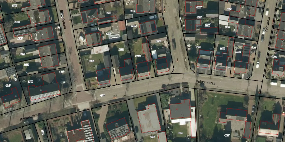 Gebruik de zoekbalk of klik op een perceel voor informatie over de adressen binnen dit perceel.