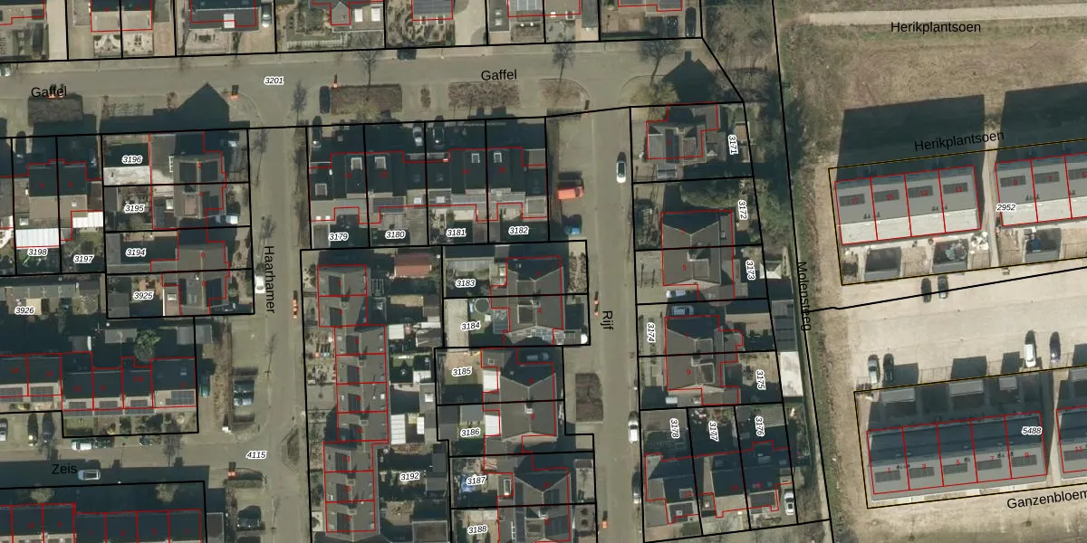 Gebruik de zoekbalk of klik op een perceel voor informatie over de adressen binnen dit perceel.