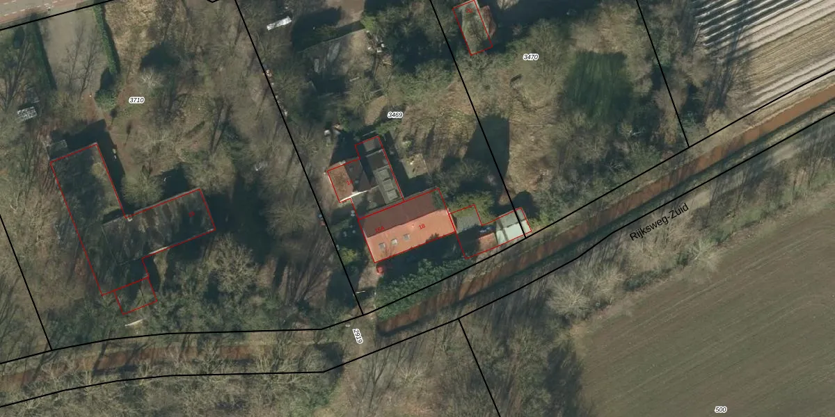Het perceel waarop Rijksweg-Zuid 18-A staat heeft een oppervlakte van 3400 m². Dit is een zeer groot perceel. De perceeloppervlakte wordt geregistreerd door het Kadaster. Gedetailleerde informatie over de maten van dit perceel kunt u vinden in het rapport Kadastrale kaart met maatvoering van Rijksweg-Zuid 18-A.
