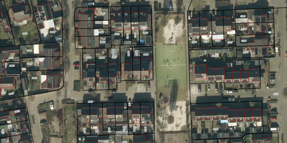Het perceel waarop Sikkel 19 staat heeft een oppervlakte van 198 m². Dit is een middelgroot perceel. De perceeloppervlakte wordt geregistreerd door het Kadaster. Gedetailleerde informatie over de maten van dit perceel kunt u vinden in het rapport Kadastrale kaart met maatvoering van Sikkel 19.