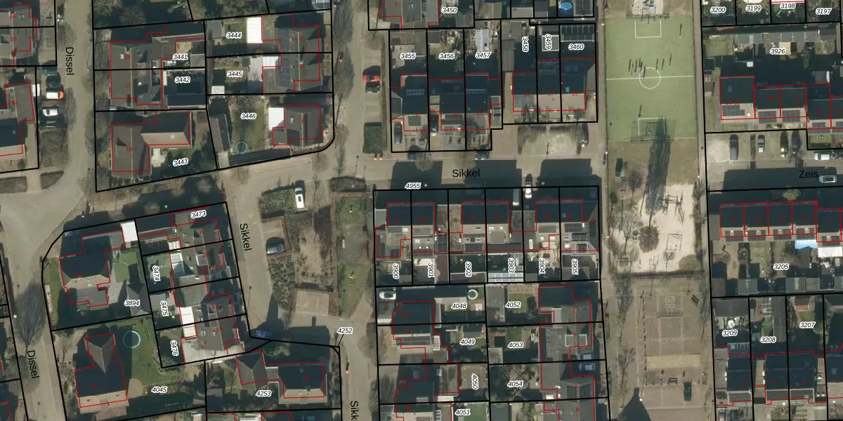 Het perceel waarop Sikkel 29 staat heeft een oppervlakte van 200 m². Dit is een middelgroot perceel. De perceeloppervlakte wordt geregistreerd door het Kadaster. Gedetailleerde informatie over de maten van dit perceel kunt u vinden in het rapport Kadastrale kaart met maatvoering van Sikkel 29.