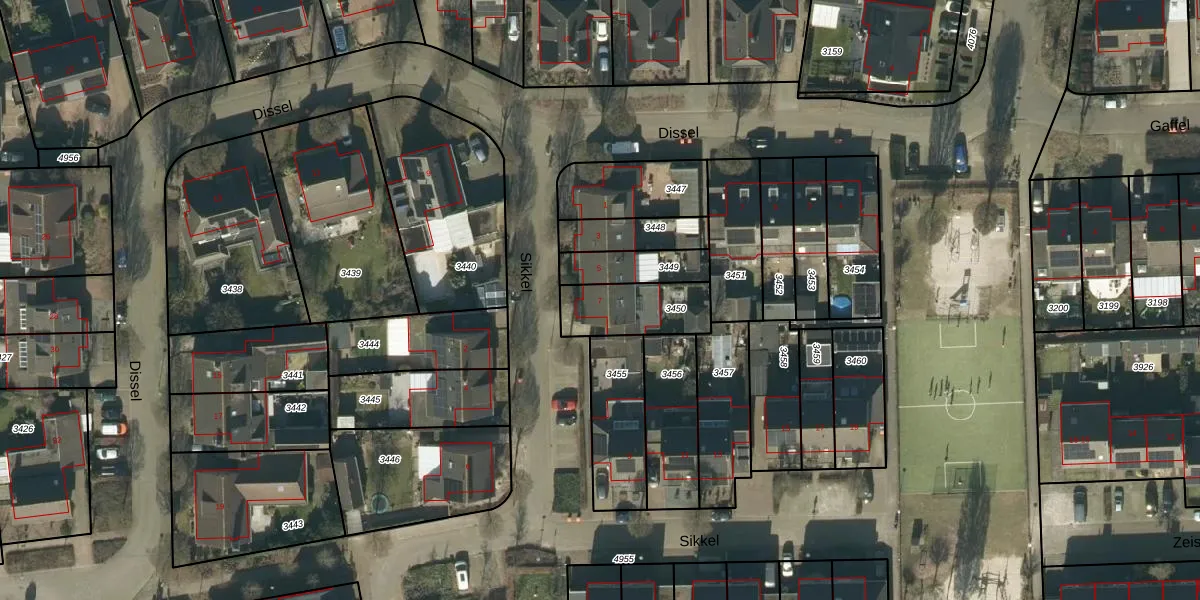 Gebruik de zoekbalk of klik op een perceel voor informatie over de adressen binnen dit perceel.