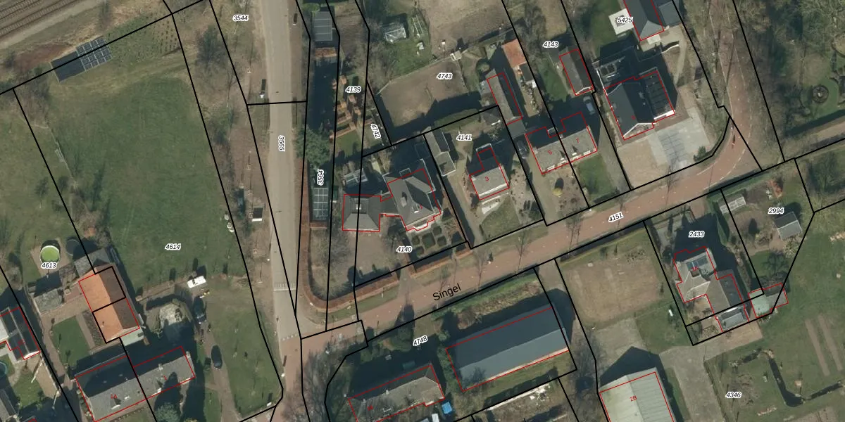 Het perceel waarop Singel 1 staat heeft een oppervlakte van 640 m². Dit is een groot perceel. De perceeloppervlakte wordt geregistreerd door het Kadaster. Gedetailleerde informatie over de maten van dit perceel kunt u vinden in het rapport Kadastrale kaart met maatvoering van Singel 1.