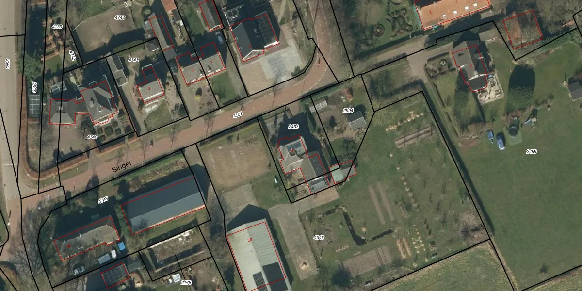 Het perceel waarop Singel 2-A staat heeft een oppervlakte van 515 m². Dit is een groot perceel. De perceeloppervlakte wordt geregistreerd door het Kadaster. Gedetailleerde informatie over de maten van dit perceel kunt u vinden in het rapport Kadastrale kaart met maatvoering van Singel 2-A.